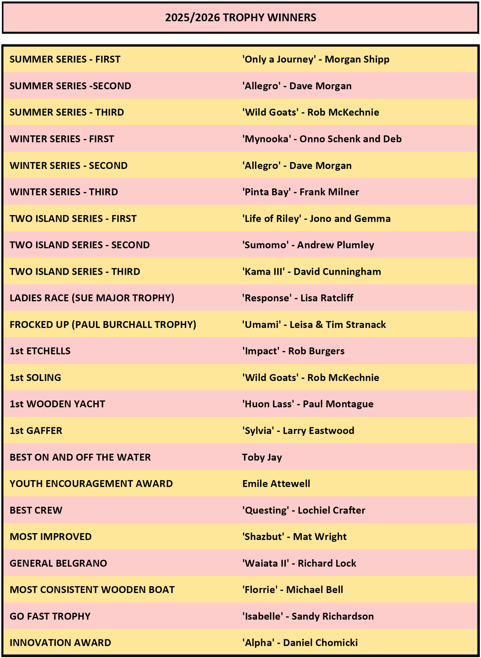 Trophy Winners 2025/26